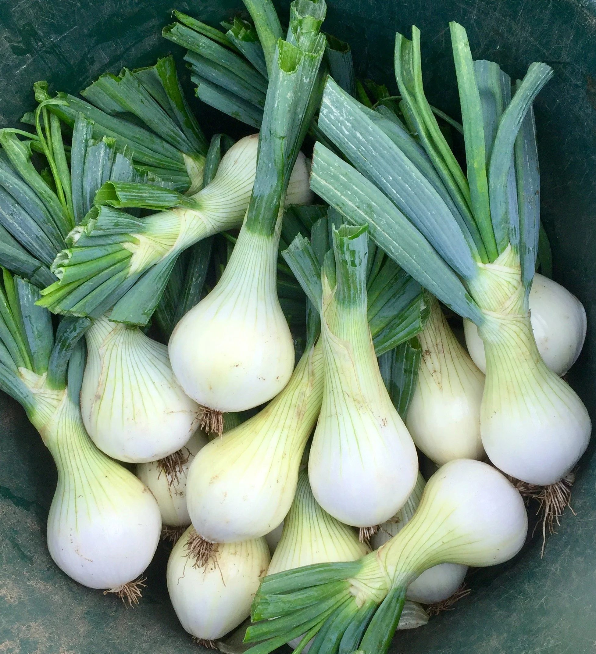 Ailsa Craig onions: these big fresh sweet onions are great sliced thick, brushed with olive oil, and cooked on the grill; also yummy sliced thin on sandwiches and burgers, caramelized, or use in any recipe that calls for sweet onions. They store best in the fridge for up to 3 weeks or may be dried out on the counter.
